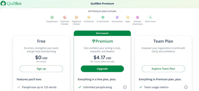 | Premium Plan | Unlimited paraphrasing and modes | Unlimited rewrites |