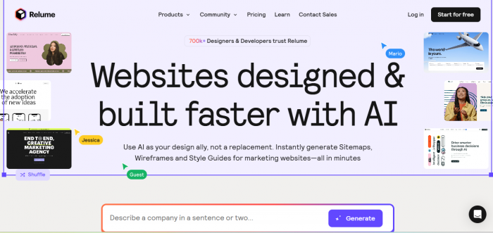 What it does: AI website and wireframe generator with easy exports for tools like Webflow.
