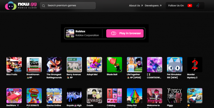 Variants: Only browser-based; no special versions or paid upgrades specific to Roblox on now.gg.