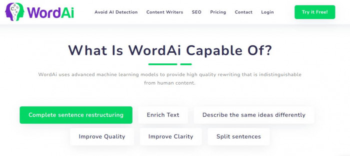 Word AI is built for full-content rewriting, not just sentences. It can rewrite entire paragraphs or articles while restructuring sentence flow, which makes it closer to human rewriting than QuillBot. Pricing starts at around $57/month, making it one of the most expensive options in this category. (https://wordai.com/)