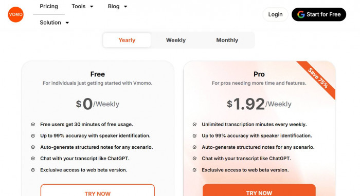 2. Pro plan about $19.99 per month or discounted annual plans around $99.99 per year (Vomo)