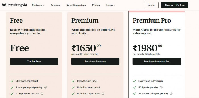 ProWritingAid is more aggressive on pricing. The yearly plan is cheaper, and the lifetime deal makes it a one-time investment for long-term users.
