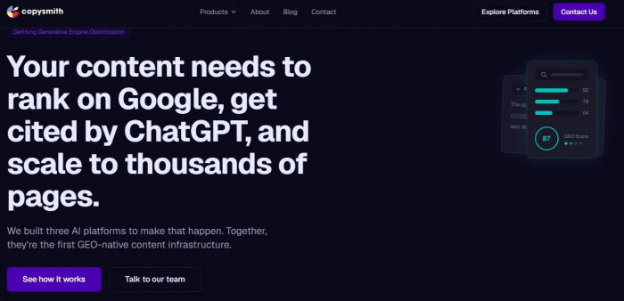 Copysmith focuses heavily on eCommerce content generation, particularly bulk product descriptions and catalog-based workflows. (https://www.copysmith.ai/)
