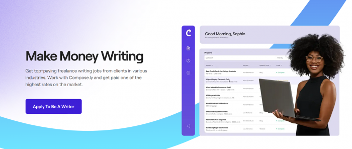 Compose.ly is a more structured content creation network that pays above-average rates, typically between $0.10 and $0.14 per word. Writers undergo a skill test to qualify, ensuring consistent quality across industries like tech, marketing, and e-commerce.