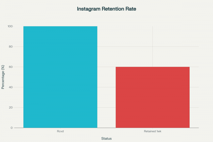This visual highlights that while users receive 100% of promised followers initially, only about 60% remain after a week, demonstrating a significant drop-off in retention.