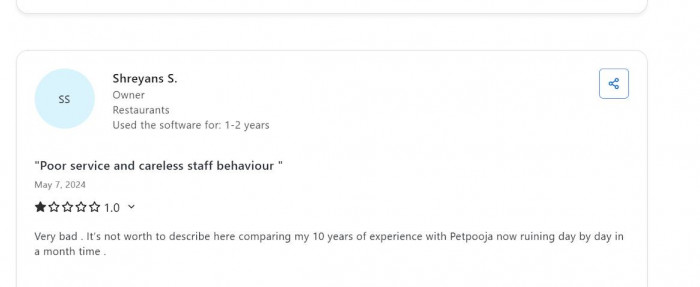 1. A reviewer describes Petpooja as very good cloud-based software that helps with invoicing, inventory, stock, payment modes, and tracking, which has helped grow both online and offline sales.