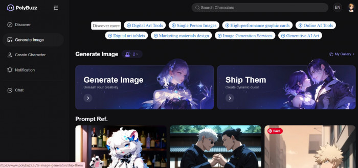 - Image Generation: Fun for creating scenes, especially in “Normal” (single character) or “Ship Them” (two-character) modes; only anime styles allowed.
