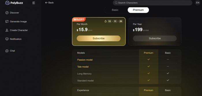 PolyBuzz offers two main membership tiers, Basic and Premium, with distinct pricing and feature sets.