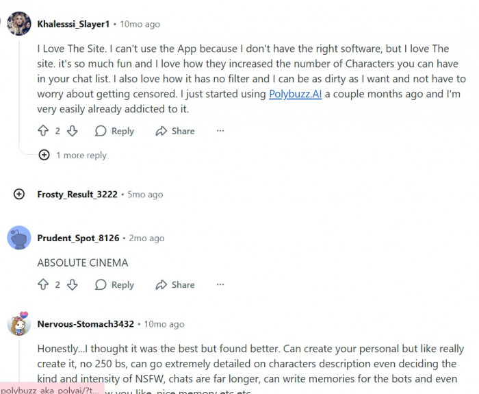 - General Sentiment: Most appreciate the vast character choices and freedom, especially for adult/private scenarios. Voice and image features notably enhance immersion.