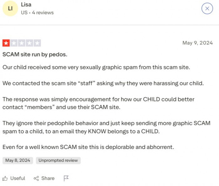 - On forums and complaint boards, reports of graphic spam and questionable safety are present.