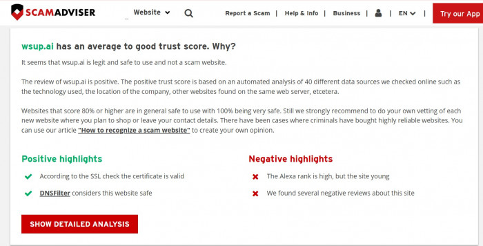 Safety and moderation get mixed marks. Some users enjoy uncensored, open-ended chats, but parents and cautious users warn about inconsistent moderation of certain character profiles. Trusted review sites mark wsup.ai as generally legit but advise against oversharing private info.